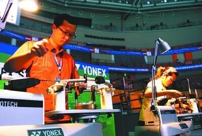 在羽毛球界,有这样一句行话——三分拍、七分线,这句话足以体现出穿线对于羽毛球拍的重要性,正因如此,在每一个国际赛事的场地附近,都会有一间并不那么起眼的工作间——穿线室。