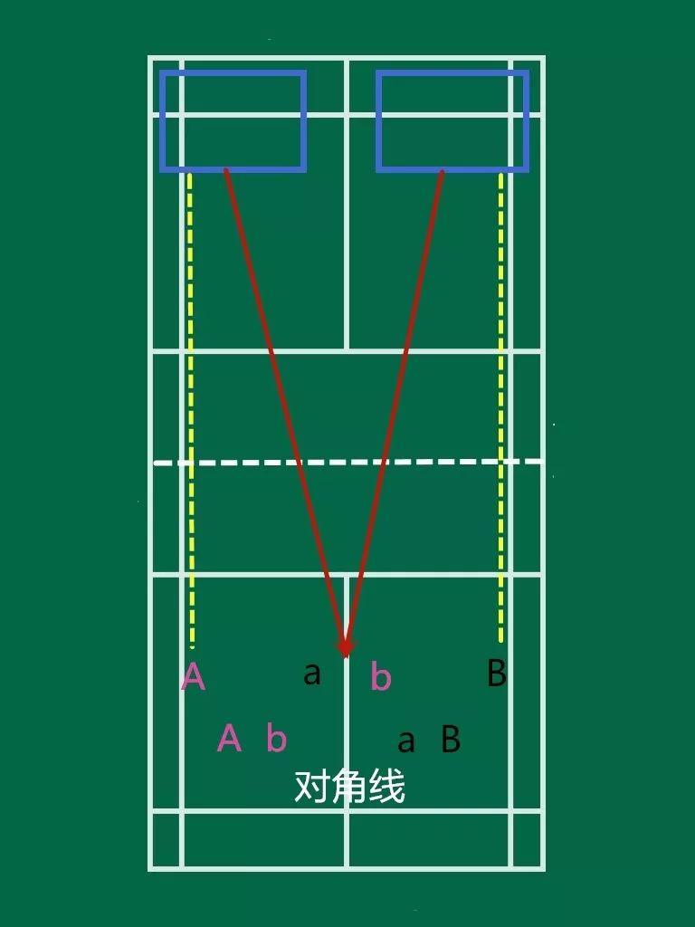 当对手在底线两段的区域杀中路时,此时要对角线站位的人,因为直线位置的防守队员靠近边线,对角线的防守队员站位更靠近中线,所以对角线的人接比较合适。