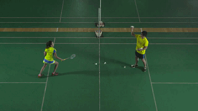 第一种(主练者不熟悉网前动作):陪练者在网前抛球,主练者进行放网、搓球、勾对角的训练。这里对陪练者的抛球要求较高,尽量模拟网前回球。