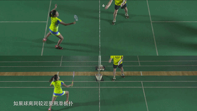 4)不易出边线,在网前两角击球时,可以用抹的动作把球兜回至中场或对角线,这样不易出界。