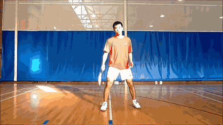 起动要快,一般采用侧身后退,由小步到大步,击球前步子要到位,然后原地或起跳腾空击球。