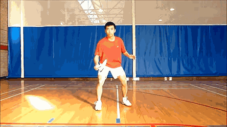 当来球离身体较近时,身体重心调整至左脚,用左脚内侧蹬地,右脚随髋关节的转动,同时向右侧跨一大步到位击球。