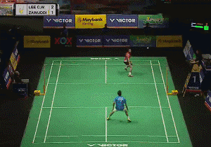杀球之前先侧身,左脚在前,两脚的脚尖着地,并且用快速的后退步伐后退,使击球点在你的右肩前上方。起跳的时候大概在球开始下落的时候,并且双腿要先保持微屈的姿势,靠脚尖蹬地的力量起跳杀球,杀球后立即转身,左脚在后且先着地,右脚落地后即回到场地中心位置。