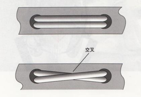 编织横线时走斜形路线,可以减少球线摩擦,同时提高穿线速度。
