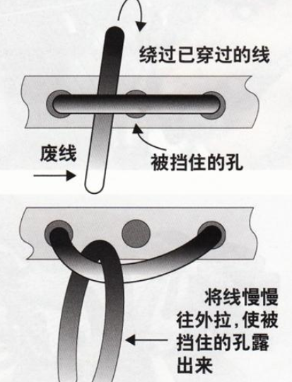 从图示这个角度检查是最容易看出错编漏编的。并把线绕到第6个孔处,并按照前面所述的方法打结尾结。