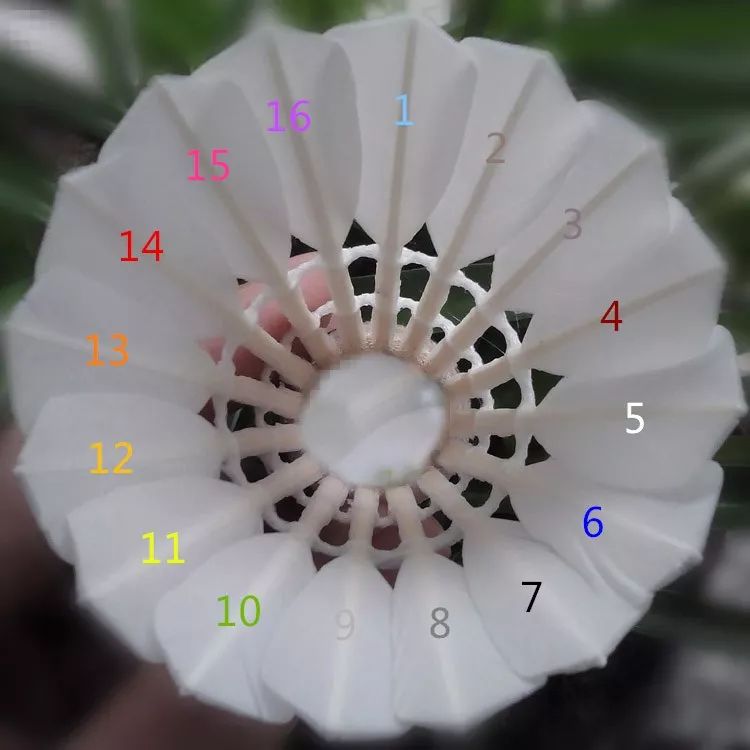 每个羽毛球都有16根羽毛,无一例外。不信你可以打球前数一数。