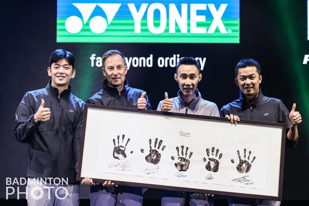 随后四大天王李宗伟、盖德、陶菲克与龙大先后被介绍出场,未能出席的林丹,则通过视频送上祝福。这是疫情两年来,王者之志首次复办,四大天王难得重聚,大会也特别进行打手印纪念活动。