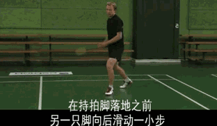 落地时,持拍脚要指向外侧一点,并承受身体重量。另一只脚用来保持平衡。