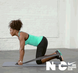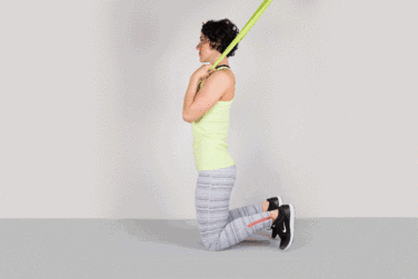 第一个动作主要训练我们的腹直肌,注意手臂抓住绳把后是锁死的,只能靠我们腹部的力量往下拉。第二个动作训练我们的人鱼线,模仿的是斜下劈的动作,手臂同样需要甚至,靠两侧腹肌的力量向斜下方拉。但是注意做动作的时候一定要慢,不能快,以免弹力带阻力突然增大损伤肌肉。