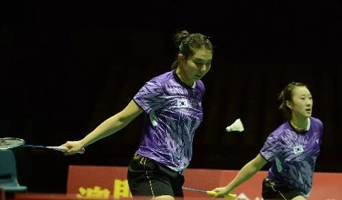 韩国羽球美女挑战超难羽毛球杀球好美~