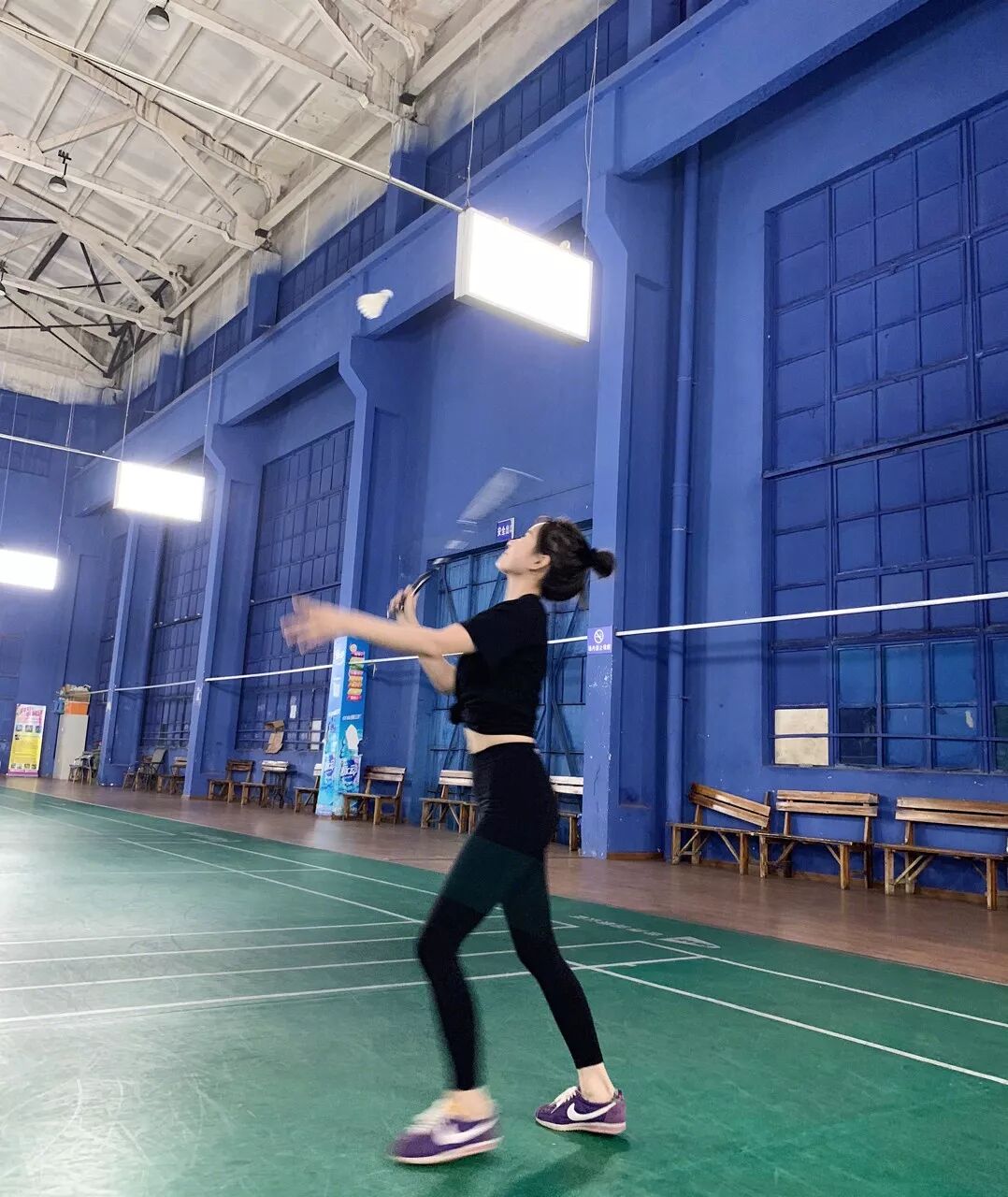 韩国羽球美女挑战超难羽毛球杀球好美~