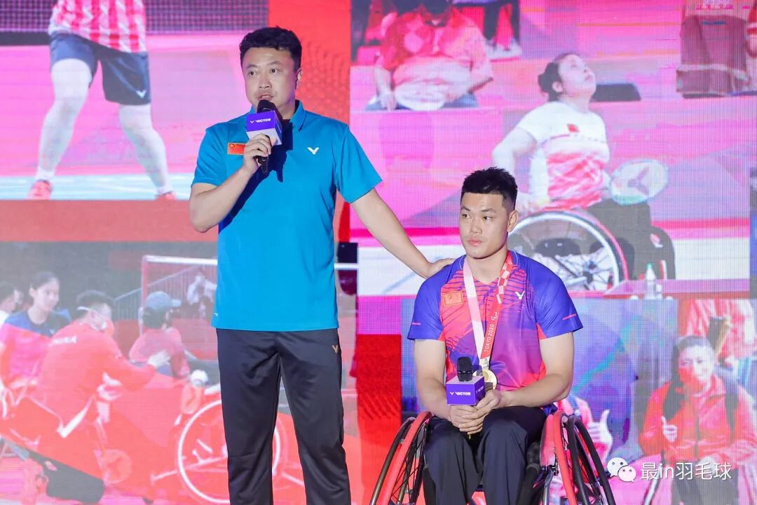 中国残疾人羽毛球队去年在残奥会羽毛球项目比赛勇夺5金3银2铜,总教练董炯和金牌选手屈子墨、麦建朋、刘禹彤借助本次大会,表达了对VICTOR长期支持中国残疾人羽毛球事业的感谢。