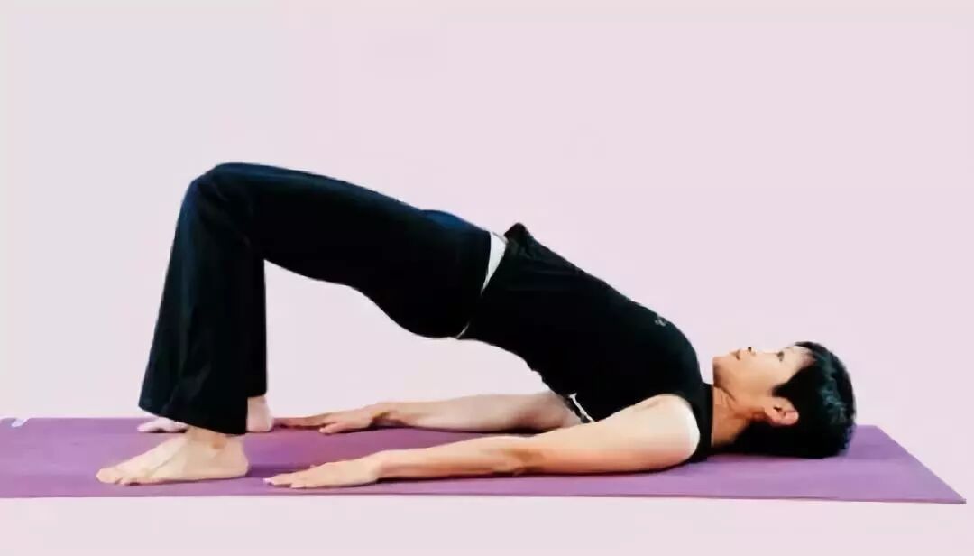 3. 架桥练习:平躺于地,膝盖弯屈,双脚分开,与臀部同宽,手臂放在两侧。缓慢抬起髋部,平稳离开地面。然后缓缓放下。重复15次。