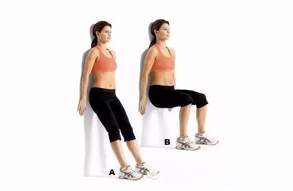 静立后靠半蹲:身体站直,背部贴近墙面(任何固定物体都可以),挺胸抬头,双脚分开与肩同宽,脚尖向前,慢慢下蹲,背部不可离开墙面,直到膝关节有酸胀感时停住不动(腿后夹角不可低于90度,具体角度要根据自己情况来调节),直到双腿酸胀明显颤抖为止,起身后慢走放松。3次为一组,每次间隔1分钟。