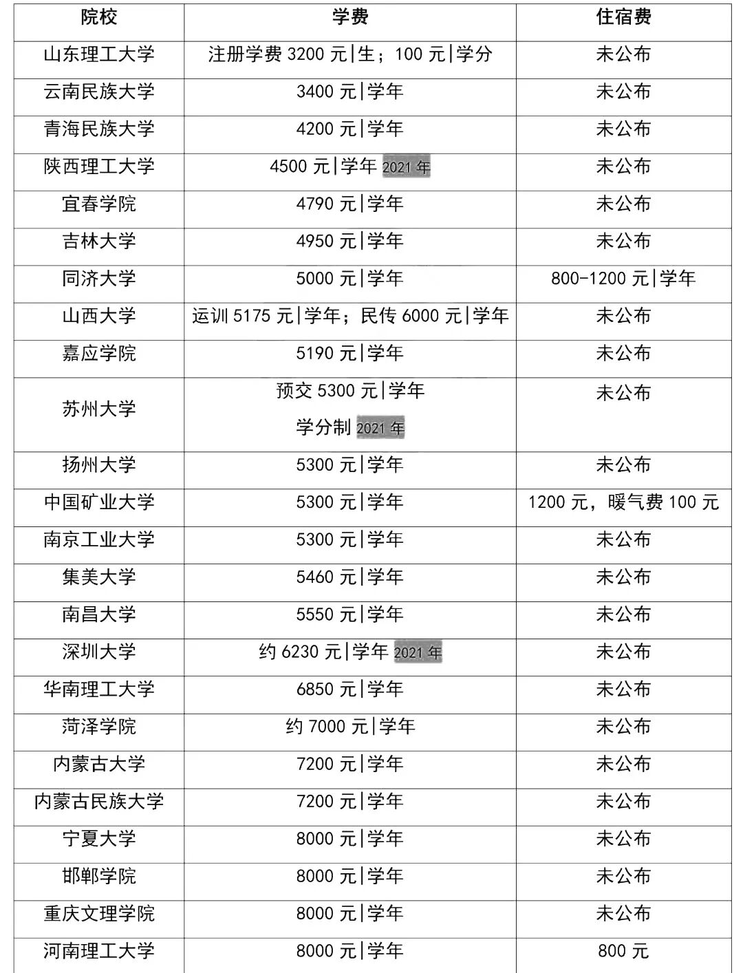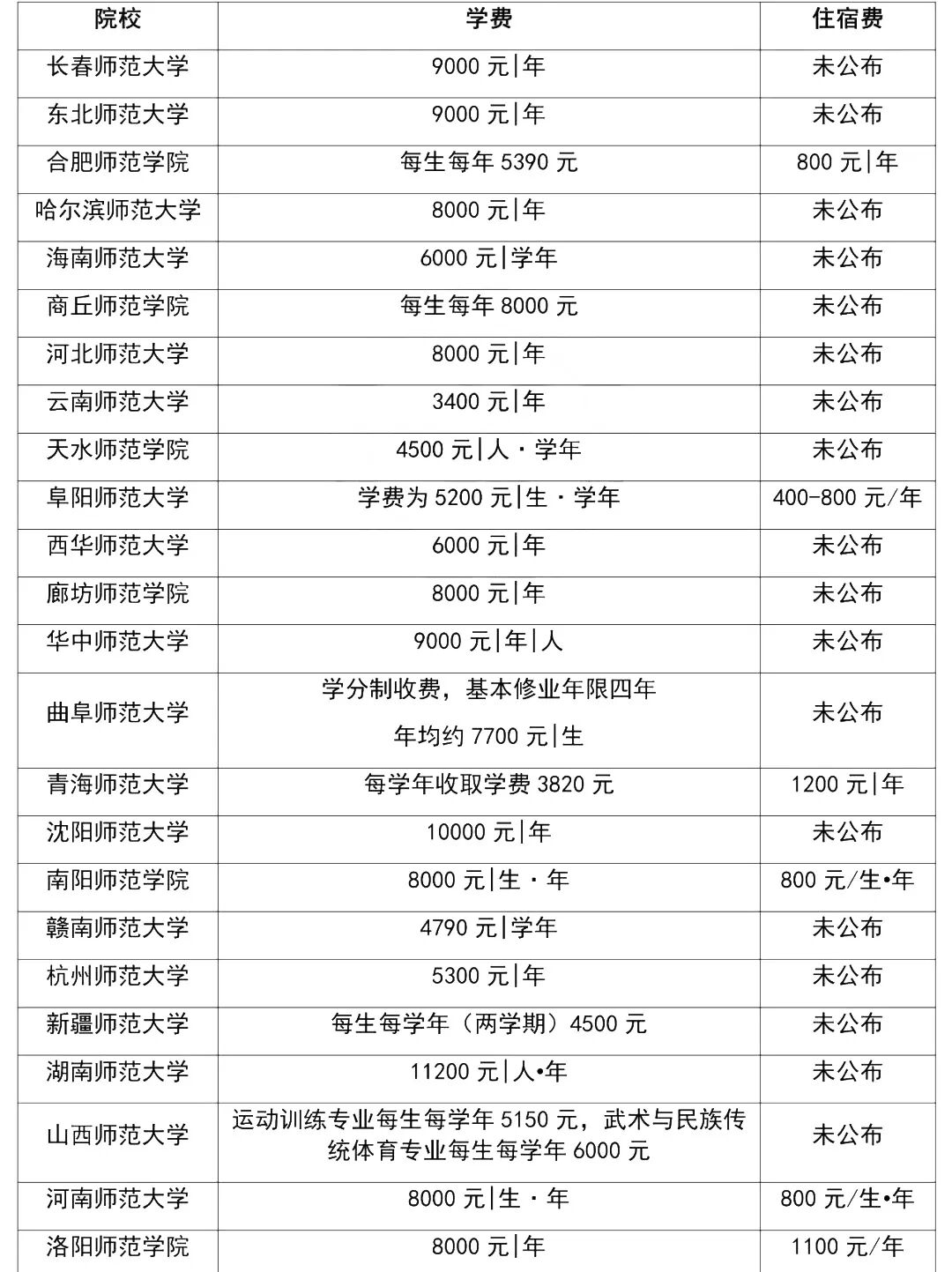 本文内容根据院校招生简章整理,学费标准如有变动,按该省物价局有关规定执行。体育类