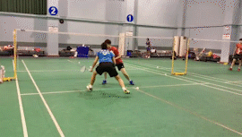 如果以上两项做的非常好,那么就可以开始实战训练。实战训练时尽量做到回球到位,追求落点。(相对差一些的羽球爱好者,可以只打半场直线的跑动练习,就是一个网前球,一个后场球。练习者跑进行直线跑动练习)