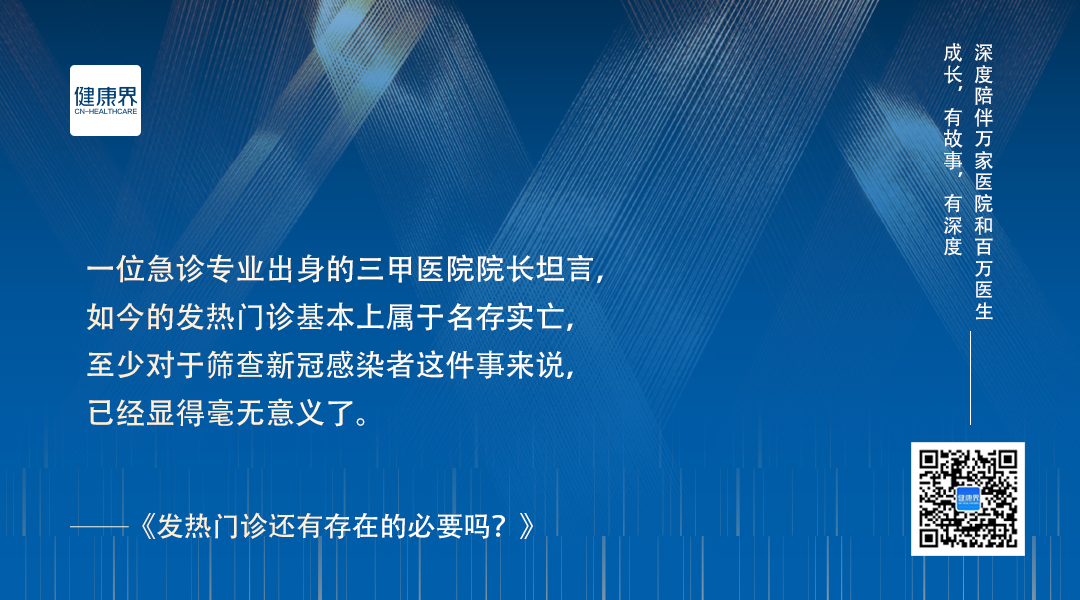 一位急诊专业出身的三甲医院院长甚至向健康界坦言,如今的发热门诊基本上属于名存实亡,至少对于筛查新冠感染者这件事来说,已经显得毫无意义了。