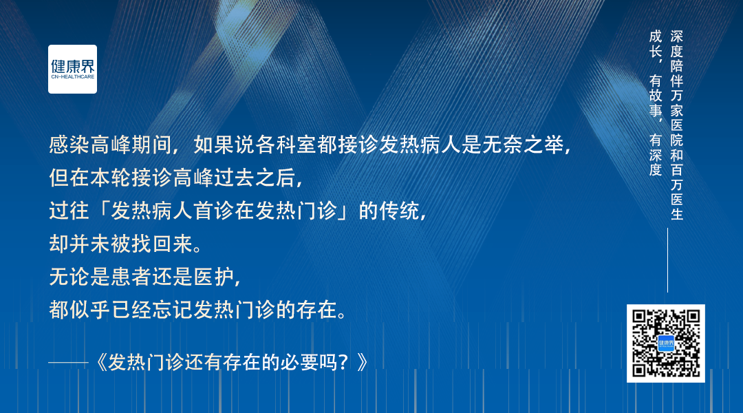 「我们并不知道新冠病毒未来如何变异,也不清楚通过上呼吸道传播的严重疾病哪个时刻会到来,因此发热门诊是医院绷紧的那根弦,要对院内感染做好‘哨兵’工作。」林明贵对健康界说,发热病人首诊在发热门诊,这是个多年来延续的好传统、好习惯,医患双方都不应该将其丢掉。