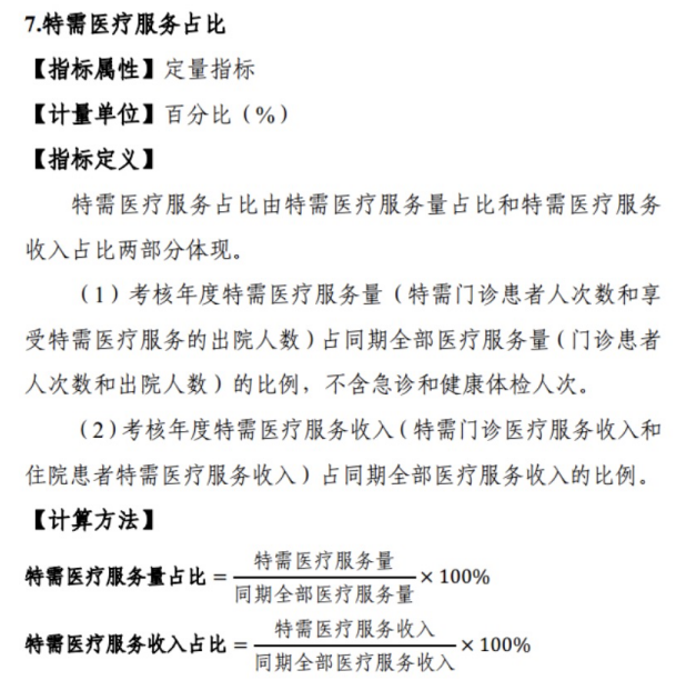 而在近期由国家卫健委印发的《国家三级公立医院绩效考核操作手册(2022版)》中,对这条10%的红线作了进一步细分:用于特需医疗服务的床位数不超过医院总床位数的10%;专家门诊的特需服务时间不超过总体服务时间的10%;特需医疗服务收入占医院全部医疗服务收入的比例不超过10%。