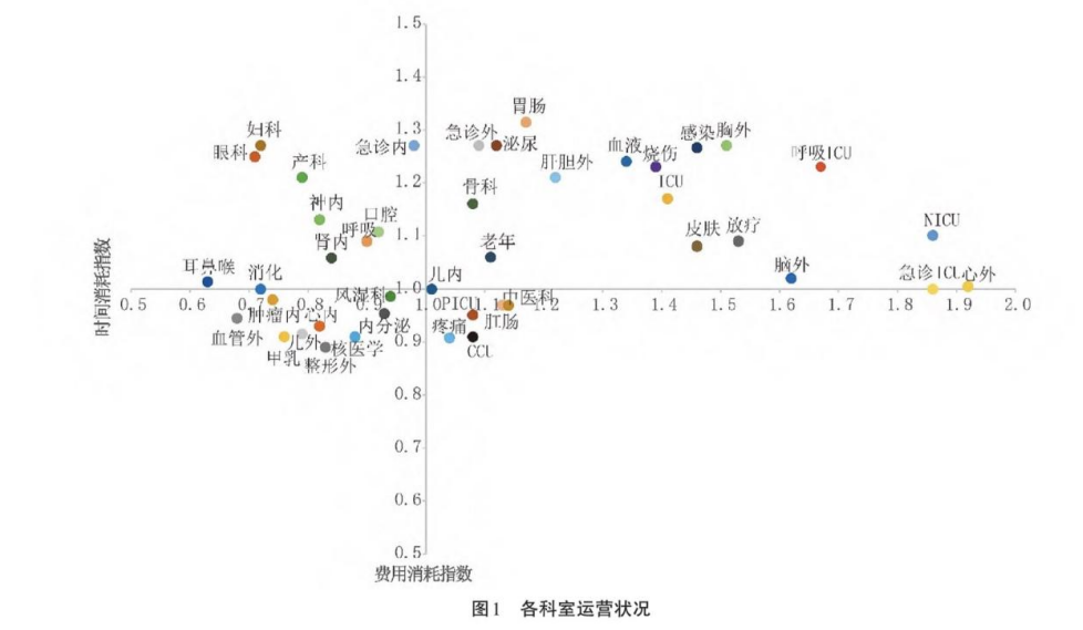 注:位于第Ⅰ、Ⅱ象限的科室,实际产生的医疗费用超过医保结付费用,科室运营亏损。