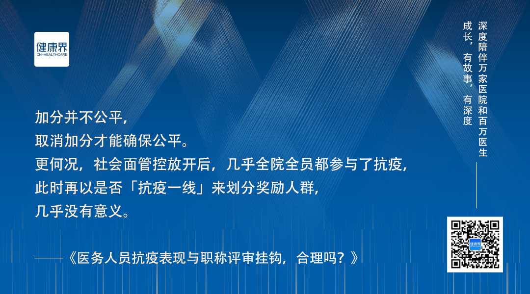 暂且不论将抗疫表现与职称评审挂钩这件事情本身是否合理(请见报道《医务人员抗疫表现与职称评审挂钩,合理吗?》),本质上而言,职称倾斜政策是一项福利政策,是对过去三年奋战在疫情防控一线,救死扶伤、无私奉献的医务人员的激励与嘉奖。
