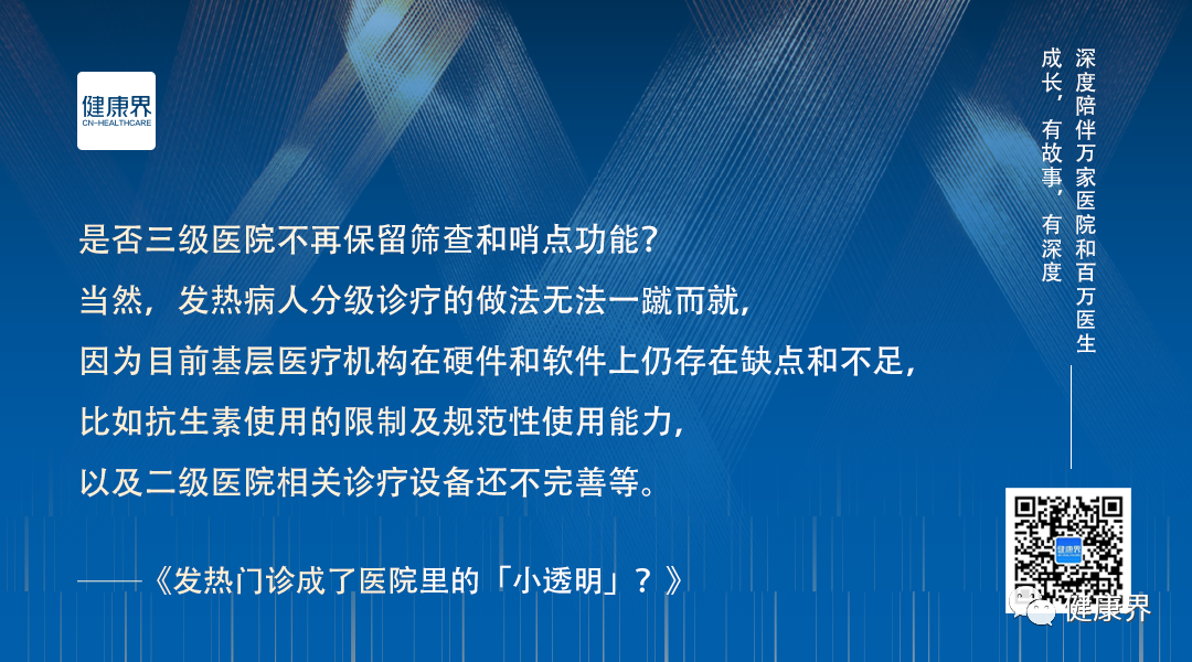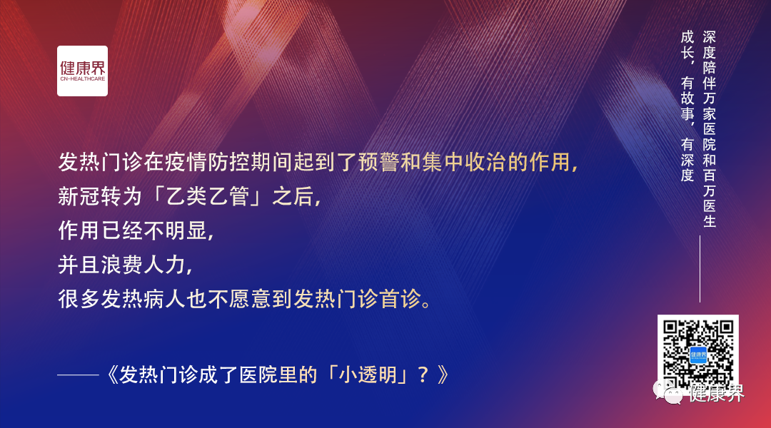 起源于2003年「非典」的发热门诊,在过去三年里,做到了「坚守阵地,绝不后退」,成为新冠疫情防控的第一道防线。在新冠降为「乙类乙管」之后,发热门诊这个特殊的哨点在扛住史上最强冲击之后,未来何去何从,成为行业热议的话题。