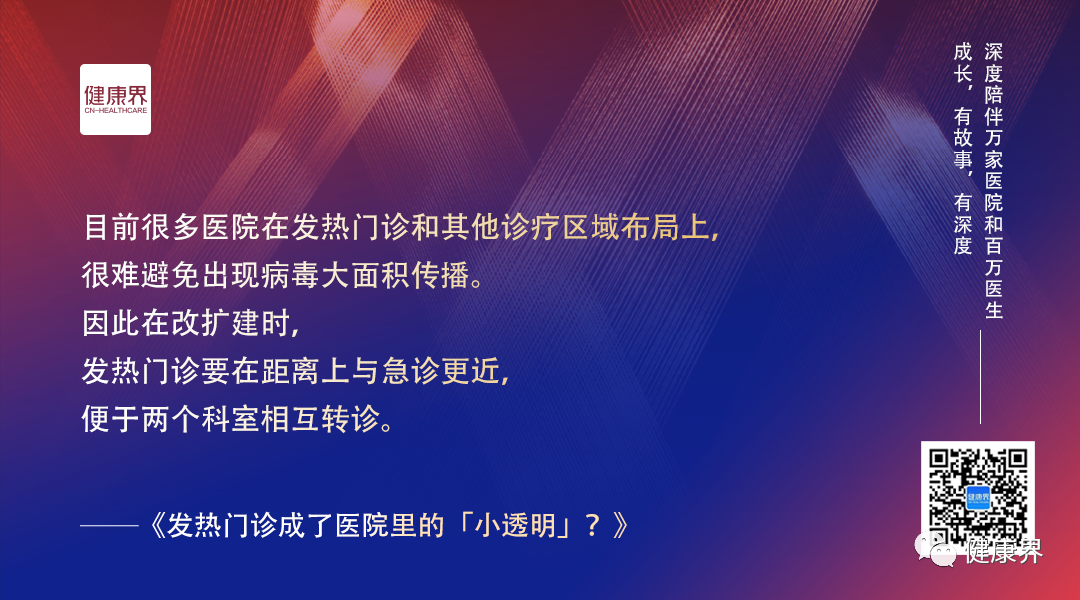 发热门诊的设置亦需要医院进行整体的规划。资深医改专家徐毓才对健康界直言,目前很多医院在发热门诊和其他诊疗区域布局上,很难避免出现病毒大面积传播。因此在各级医院改建,尤其是二级医院扩建时,要对发热门诊的设置有清晰的规划。