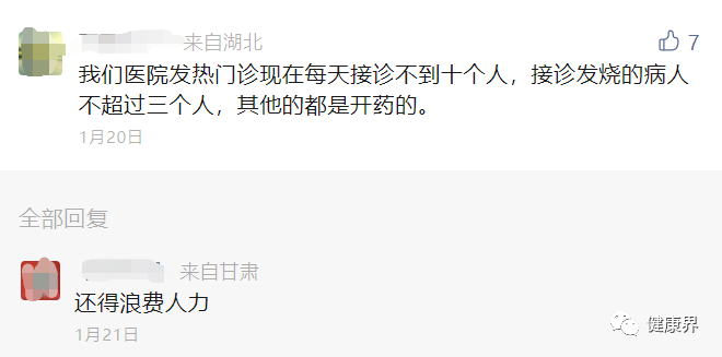 发热门诊恢复了过去的「岁月静好」模式。正如一名来自湖北的健康界网友留言所述,很多医院发热门诊一天接诊量不过十个人左右,其中多一半是来开药的,只有几位是发烧患者。