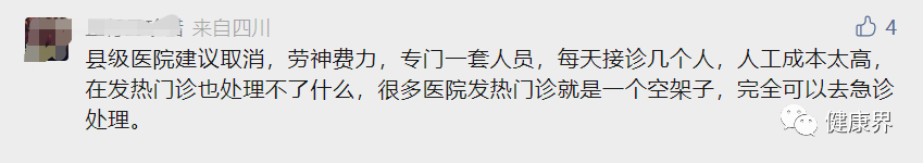 不过,有健康界网友评论说:如果病人减少就不再重视发热门诊的设立,是在这轮疫情过后「好了伤疤忘了疼」,有卸磨杀驴之嫌。