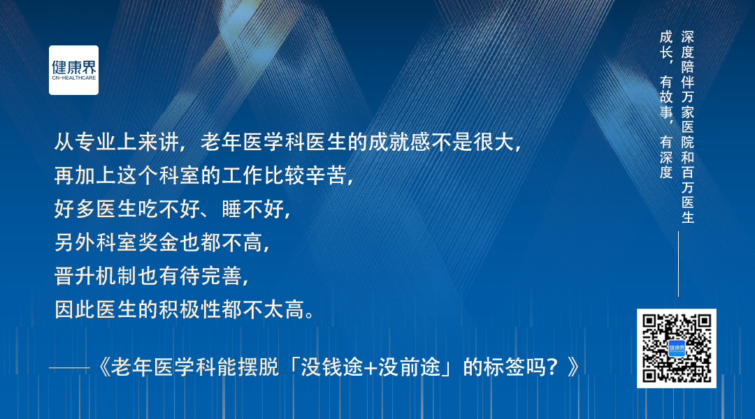 「从专业上来讲,老年医学科医生的成就感不是很大,再加上这个科室的工作比较辛苦,好多医生都吃不好、睡不好,另外科室奖金也都不高,晋升机制也有待完善,因此医生的积极性都不太高。」国家老年医学中心主任、北京医院原院长王建业对健康界表示。