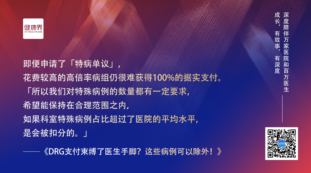 在这种情况下,如果继续按照DRG病组付费,让医院来承担亏损,显然是不合理的。金华市中心医院党委书记袁坚列曾撰文指出,这部分病例如果得不到合理补偿,会挫伤医院收治疑难危重患者、应用新技术的积极性,因此许多地方对这部分高倍率病例采取「按项目付费」。