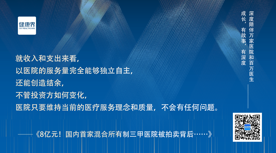 据该相关人士透露,就收入和支出来看,以重医附三院现在的服务量完全能够独立自主,还能创造一些结余,所以不管投资方如何变化,医院只要维持当前的医疗服务理念和服务质量就不会有任何问题。