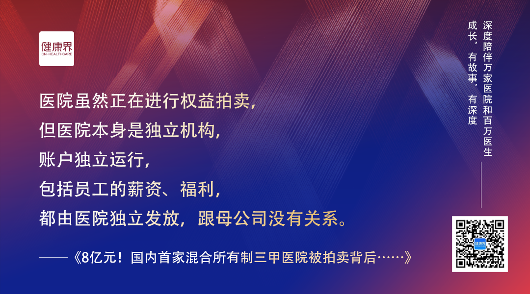一位熟悉重医附三院的相关人士对健康界表示,医院虽然正在进行权益拍卖,但重医附三院本身是一个独立的机构,账户独立运行,包括员工的薪资、福利,都由医院独立发放,跟母公司没有关系。