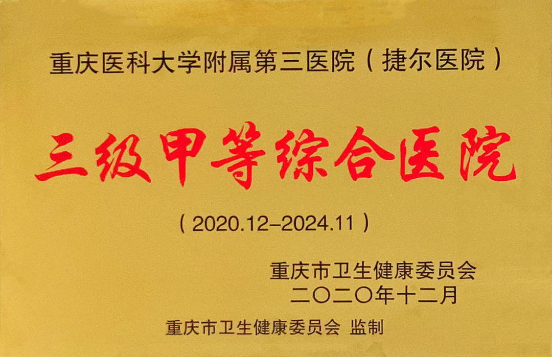 2014年12月11日,重医附三院正式动工复建;2016年5月9日,重医附三院全面开诊;2020年12月15日通过验收评审,正式成为三级甲等综合医院。