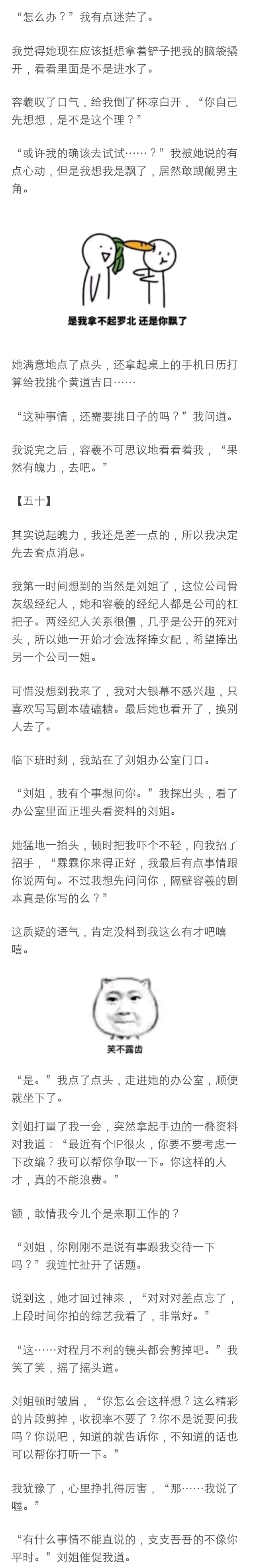 我俩差不多也是混这个圈子的,我是刚刚混出头的编剧,她是新秀导演。