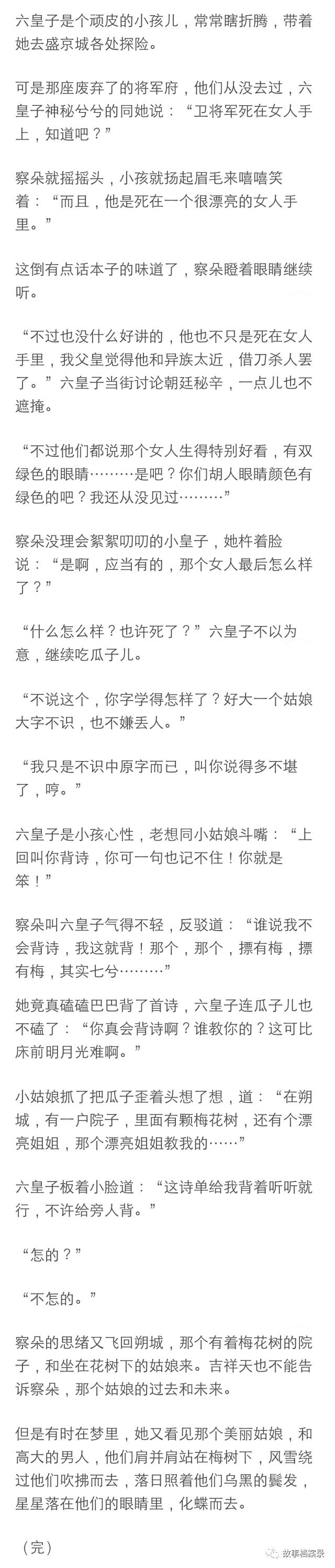 将军讲价境界非常人所能及,我裹着他的狐裘在一旁听他和老鸨讲价。
