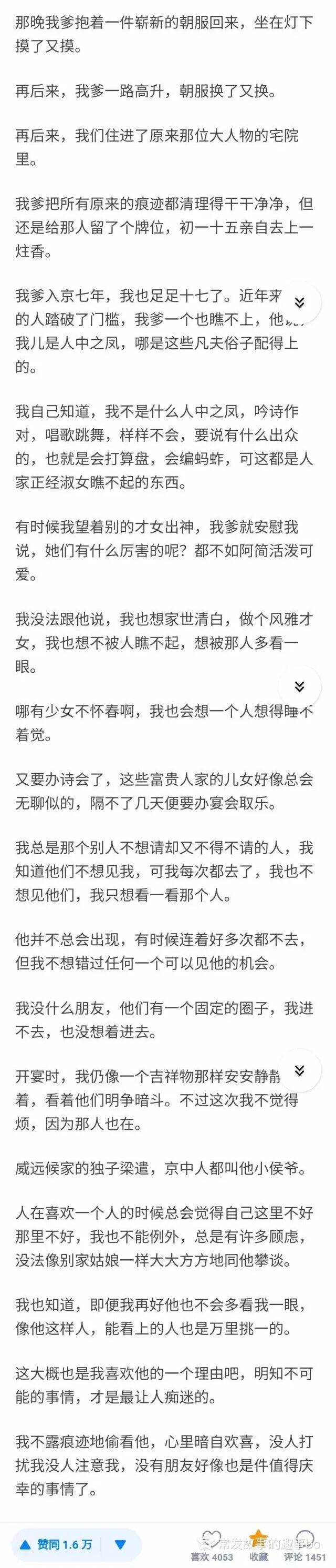 我爹的官是花两千金珠买来的,据说我爹交钱的时候,上头的人笑得差点背过气儿去。旁人只当我爹是个冤大头,只有我爹自个儿知道,散尽家财求的是哪般。我原本有个叔叔,去扬州做生意的时候被当地的恶霸打死了,扬州官府一句轻飘飘的意外死亡打发了我们,我爹投了许多状纸都石沉大海,还被官府乱棍赶走。从那以后我爹就立誓要做官,要做世上最大最大的官。我爹买的是个没油水的差事,又忙又苦,连破了的官服都来不及补。初入京的那些天,我和我娘每天早睡晚起,就为了少吃一顿饭。后来有一天,一位大人物突然敲开了我家的门,看着寒酸逼仄的房间几乎掉下眼泪来。他捧着我的手说,赵大人为国家鞠躬尽瘁,不该过得如此清苦。那人走了以后,许多官差来了我家,恭恭敬敬地把我和我娘接去了一座漂亮的小宅院。(接下文)