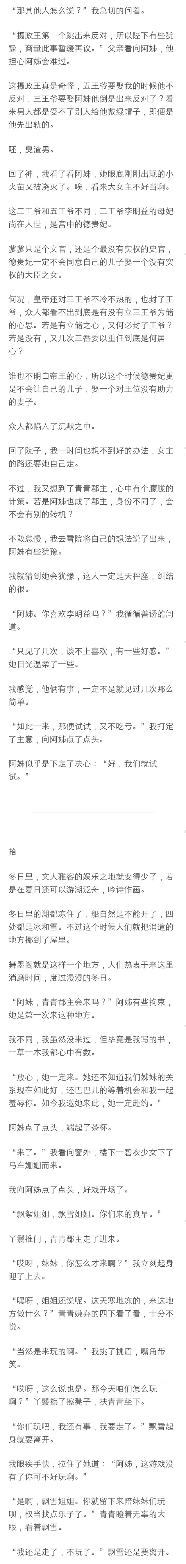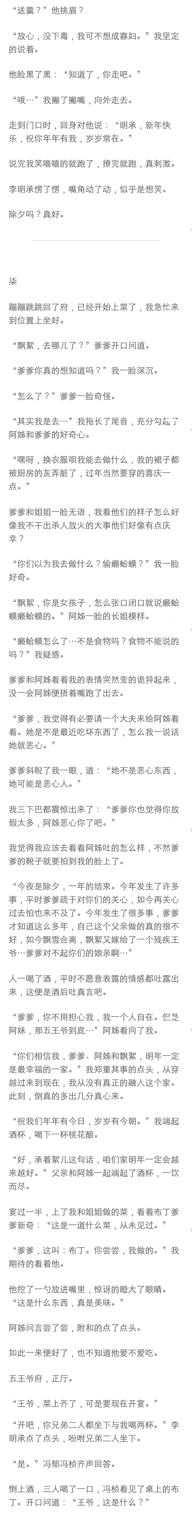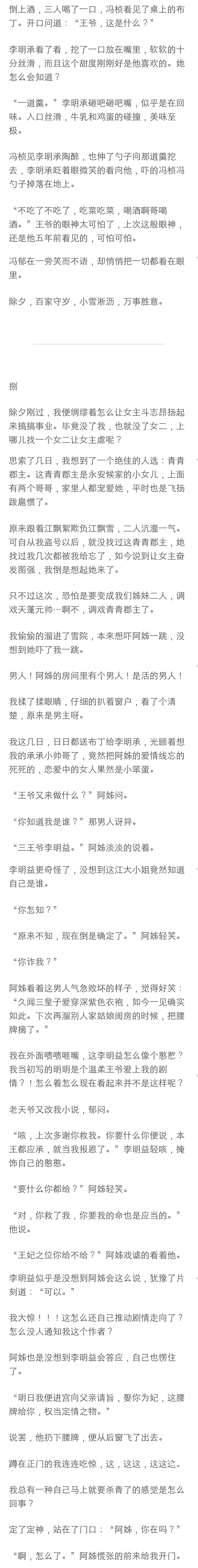 我不慌,现在的阿姊还是原来的阿姊,她还没重生,一切都可以有回旋的余地。我打了辆马车,直直的就冲到了摄政王府,还好来得及时,在她自尽的前一秒 我用我柔软的肚子挡住了她的大招攻击,可怜的我也成了那个石狮子的肉盾, 她是真的用力,我把早饭都吐了出来,也怪我,不应该早上就吃烤鸭。