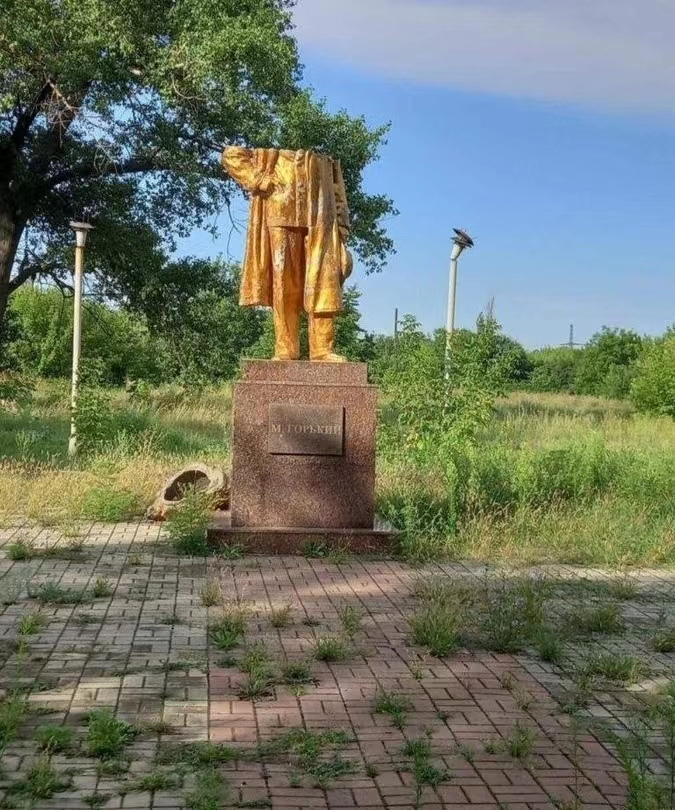 苏联作家高尔基的纪念碑,在顿涅茨克的查西夫亚尔失去了脑袋。