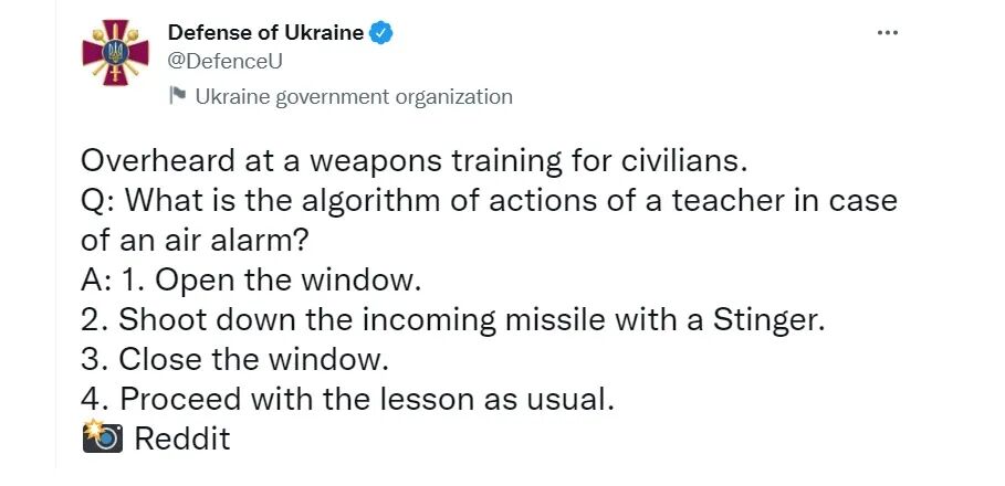 二,乌克兰国防部在社交媒体上发布一条最新问答。