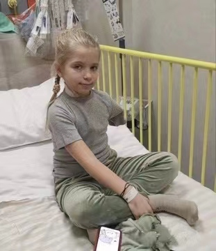 五,今年3 月,当9岁的Sasha Filipchuk和她家人试图离开布查时,俄罗斯人向他们的汽车开枪,Sasha 受伤,失去了一支手臂。