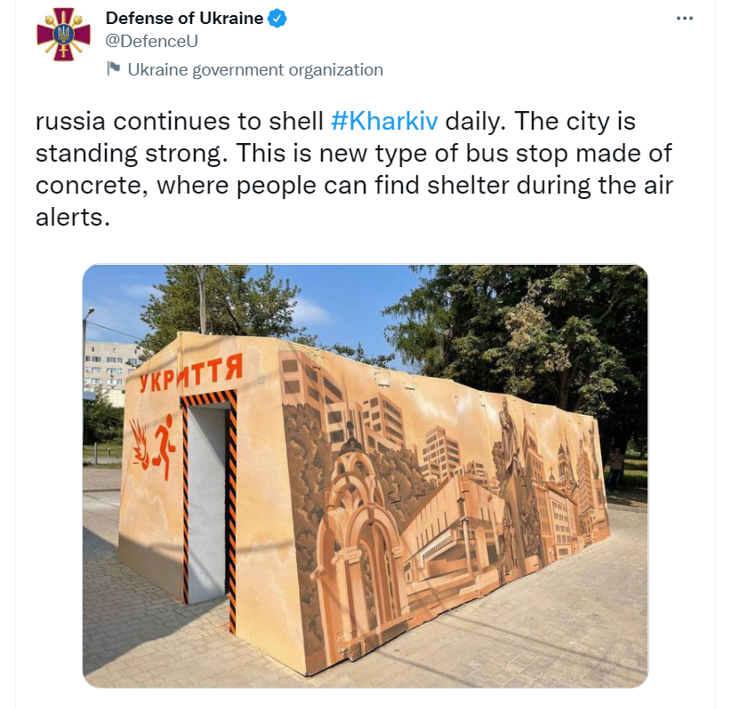 哈尔科夫是目前最常受到俄军袭击的城市之一,如今他们已经将公交车站改造成了民防掩体。