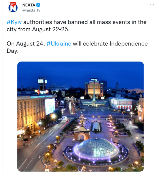 据悉,基辅日前已经宣布,在8月22日到25日之间,停止所有的大型聚集活动,而哈尔科夫市政府则下令实行 36 小时宵禁,并禁止在独立日期间举行群众集会。