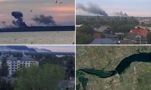 一、位于赫尔松的奥列什基和拉登斯克的俄军弹药库发生爆炸,现场浓烟滚滚,不会是又有人抽烟了吧?