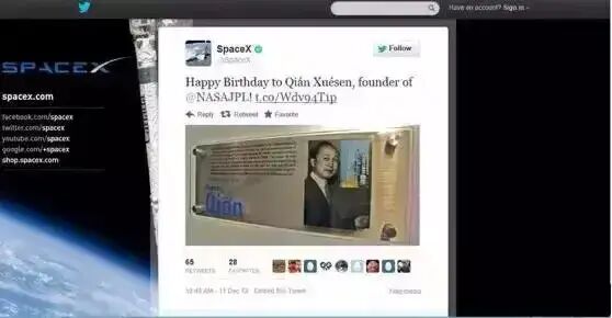 事实上,SpaceX不但在钱学森生日这天发推祝福,还在公司内部挂上了钱先生的肖像图。