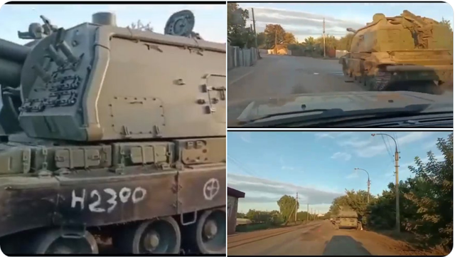 俄军的2S19 Msta-S,2S19M2 MSt a-SM 2,和2S3 Akatsiya 152毫米自行榴弹炮被遗弃在伊久姆街头。