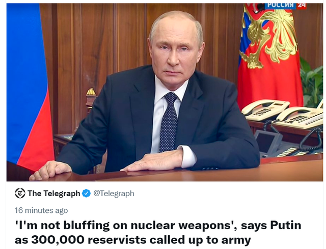普京的动员令出来后,很多网文的标题都用了”战争升级“的字样。