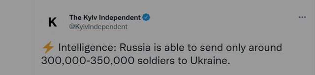 这也可以理解,毕竟如果只是对付一条”宠物狗“(乌克兰国防部昨天在社交媒体上发文称,”普京以为他是在对付一只宠物狗,但实际上他碰到的是一头金刚狼),还要搞动员令,让”天下第二“的面子往那里搁啊。