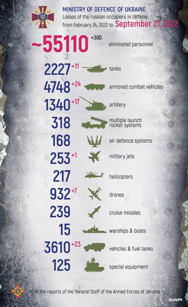 根据乌方的统计,截止今天,俄军阵亡人数达到了55110,其中昨天单日新增300人,又回复到了前期的“正常水平”(过去几天的单日新增一直低于200)。