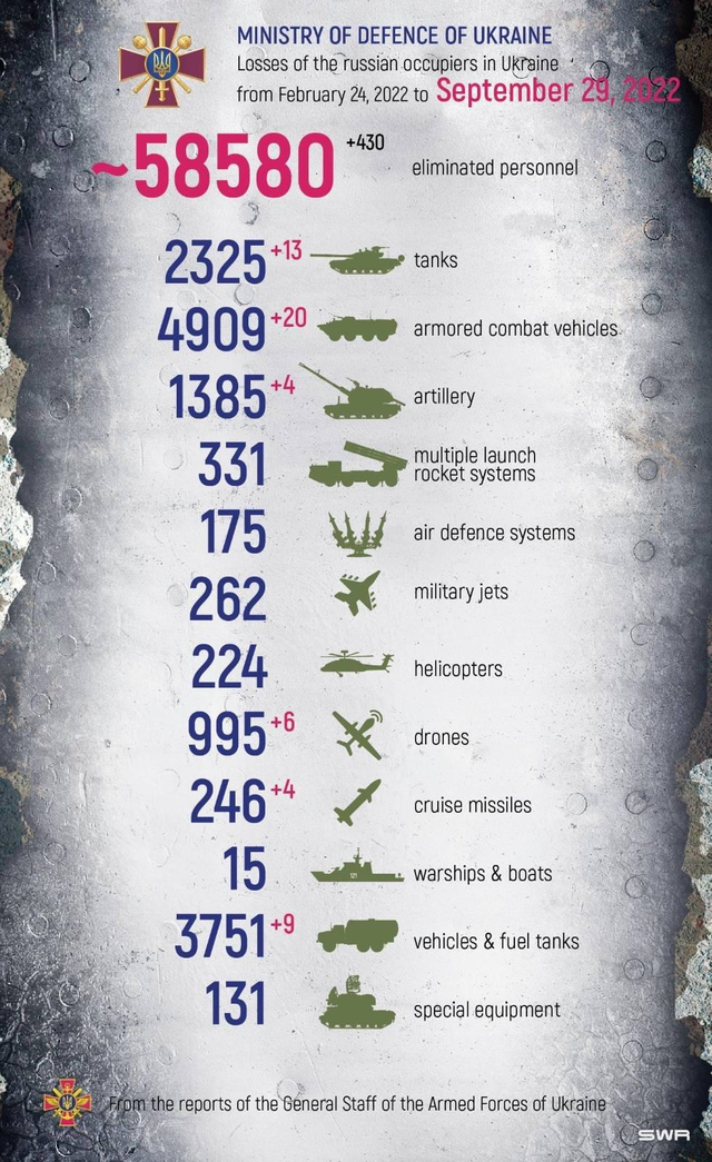 过去24小时,俄军阵亡人数达到了430人,依然维持在一个较高的水平,这说明乌东的反击战仍然在激烈的进行之中。